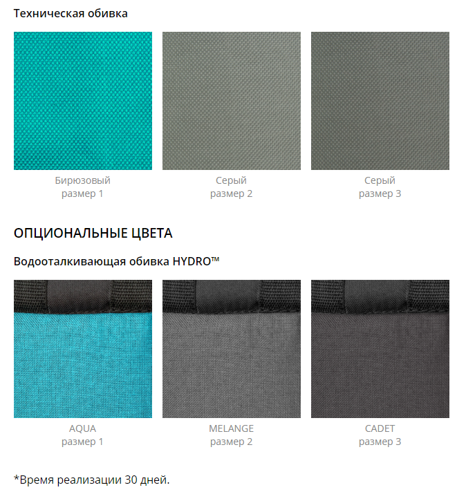 - Водоотталкивающая обивка HYDRO™ (прочная водонепроницаемая, имеет отражающие элементы, легко снимаются)
